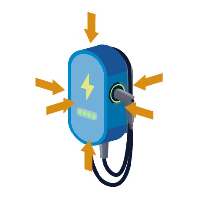 EV充電樁通常設(shè)置在戶外,為了防止浸水,原則上設(shè)備殼體為接近密閉的狀態(tài)。此外,因小型纖薄化,充電樁的殼體變小,內(nèi)部溫度更容易上升。